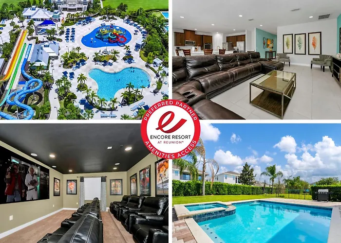 Deze 12-slaapkamer Vibrant Elite Home With Theater Room Near Disney By Rentyl - 7605M ligt op korte rijafstand van 10 minuten van het Ship Wreck Island Water Park en biedt een zwembad met een waterglijbaan voor gasten om te ontspannen en tot rust te komen. Deze villa heeft een zonneterras en ligt op 25 minuten lopen van Mystic Dunes Golf Club.
